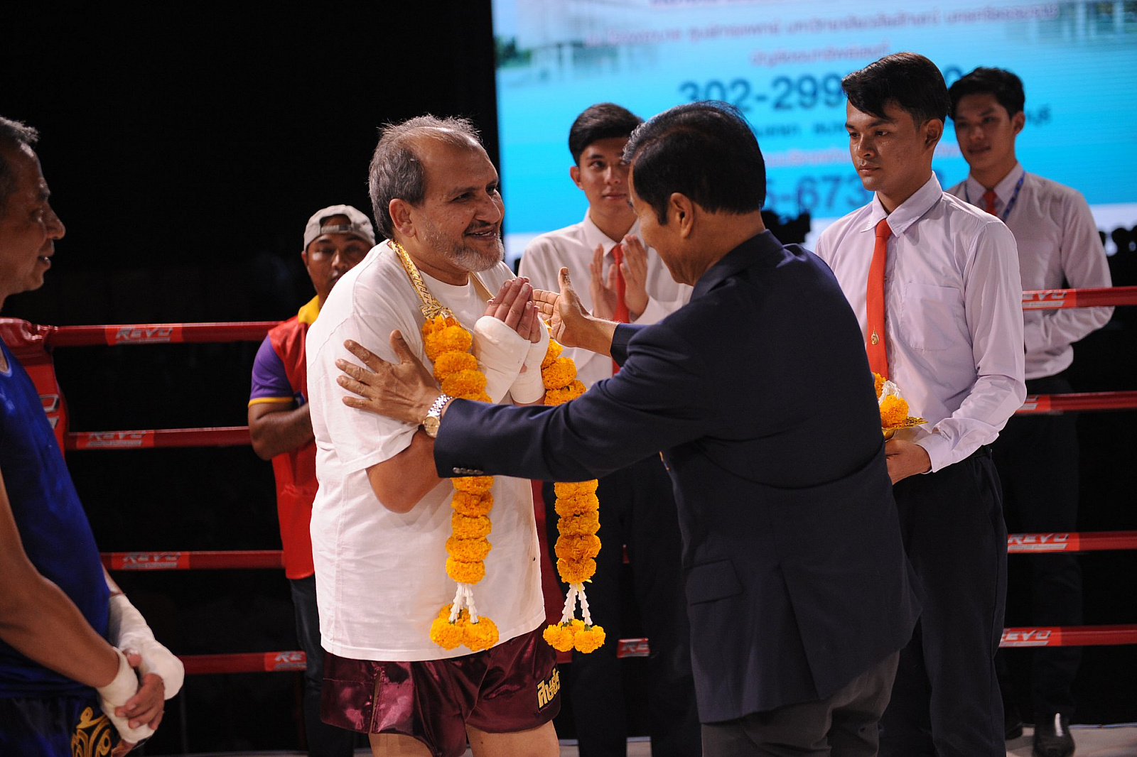 โอกาสนี้ได้รับเกียรติจากนายถาวร เสนเนียม รัฐมนตรีช่วยว่าการกระทรวงคมนาคมและประธานจัดงาน ได้เชิญชวนผู้ร่วมงานยืนสงบนิ่ง 1 นาที เพื่อไว้อาลัยให้แก่ผู้เสียชีวิตจากเหตุการณ์ยิงกราดในจังหวัดนครราชสีมา ก่อนกล่าวขอบคุณผู้สนับสนุนให้เกิดมวยมหากุศลในครั้งนี้ ว่า “การสร้างตึกสงฆ์อาพาธนี้เกิดขึ้นจากพระครูภัทรธรรมาภรณ์ เจ้าอาวาสวัดเขาเหล็ก คุณสนธิญาณ ชื่นฤทัยในธรรม ศาสตราจารย์ ดร.สมบัติ ธำรงธัญวงศ์ อธิการบดี ม.วลัยลักษณ์ โดยงานนี้ได้ใช้มวยไทยเป็นสื่อเพื่อบอกกล่าวไปยังผู้มีจิตศรัทธา ขอขอบคุณผู้ที่ให้สนับสนุนจัดมวยมหากุศลในครั้งนี้ ประกอบด้วย เฮียซุ้น เกียรติเพชร, โกเด๊ะ (พรัญชัย) ,เสี่ยแขก พี.เค ,จิตร เมืองนนท์ และนายกเอ ท่าศาลา ที่สำคัญคือ พี่น้องนักมวย พี่เลี้ยง ชาวค่ายมวยทุกท่านที่มีส่วนร่วมในครั้งนี้ ตลอดจนพี่น้องประชาชนผู้มีจิตศรัทธา ขออนุโมทนาบุญในครั้งนี้กับทุกท่านด้วย” จากนั้นนายถาวร เสนเนียม ได้คล้องมาลัยแก่นักมวยคู่พิเศษ คุณจิมมี่ ชวาลา กับ คุณสนธิญาณ ชื่นฤทัยในธรรม (จิมมี่ศิษย์รามซิงค์ VS ต้อย ท่าโพธิ์) ก่อนทำการชกเพื่อเปิดเวที จำนวน 2 ยก โดยคณะกรรมการได้ตัดสินให้ทั้งคู่เสมอกัน