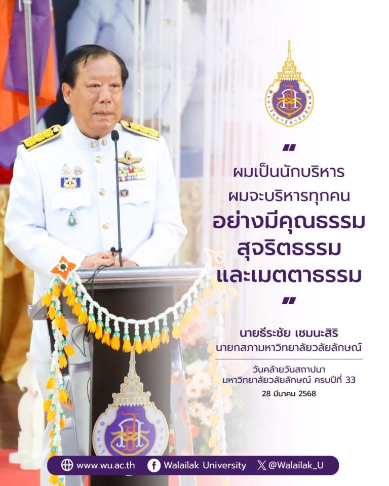 นายกสภามหาวิทยาลัยวลัยลักษณ์ ในโอกาสวันคล้ายวันสถาปนามหาวิทยาลัยวลัยลักษณ์ ครบปีที่ 33 พฤษภาคม 29, 2025