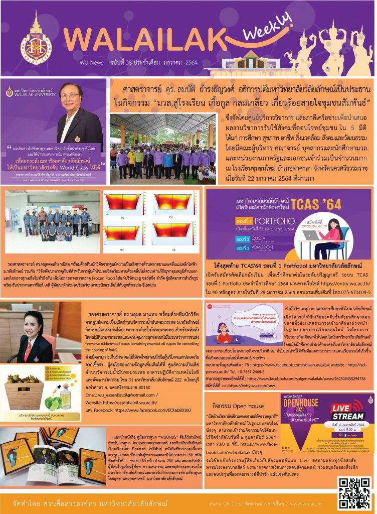 Walailak Weekly ฉบับที่ 38 ประจำเดือน มกราคม 64