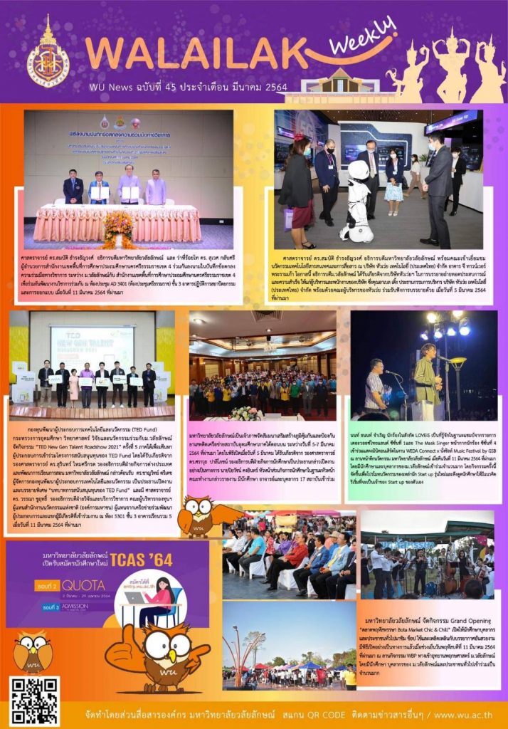 Walailak Weekly ฉบับที่ 45 ประจำเดือน มีนาคม 64 Read More »