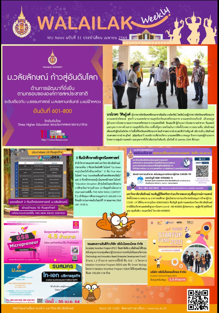 Walailak Weekly ฉบับที่ 51 ประจำเดือน เมษายน 64