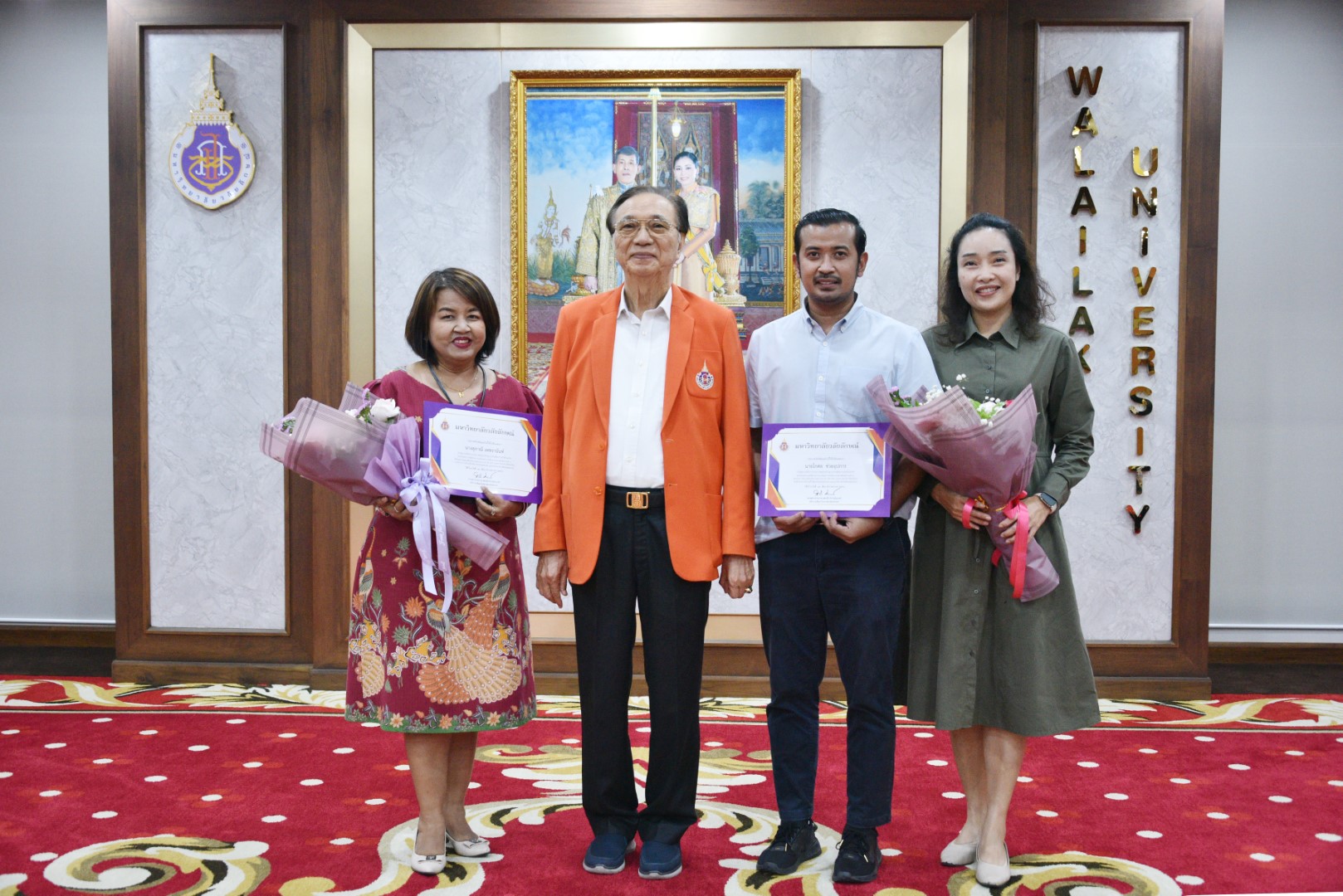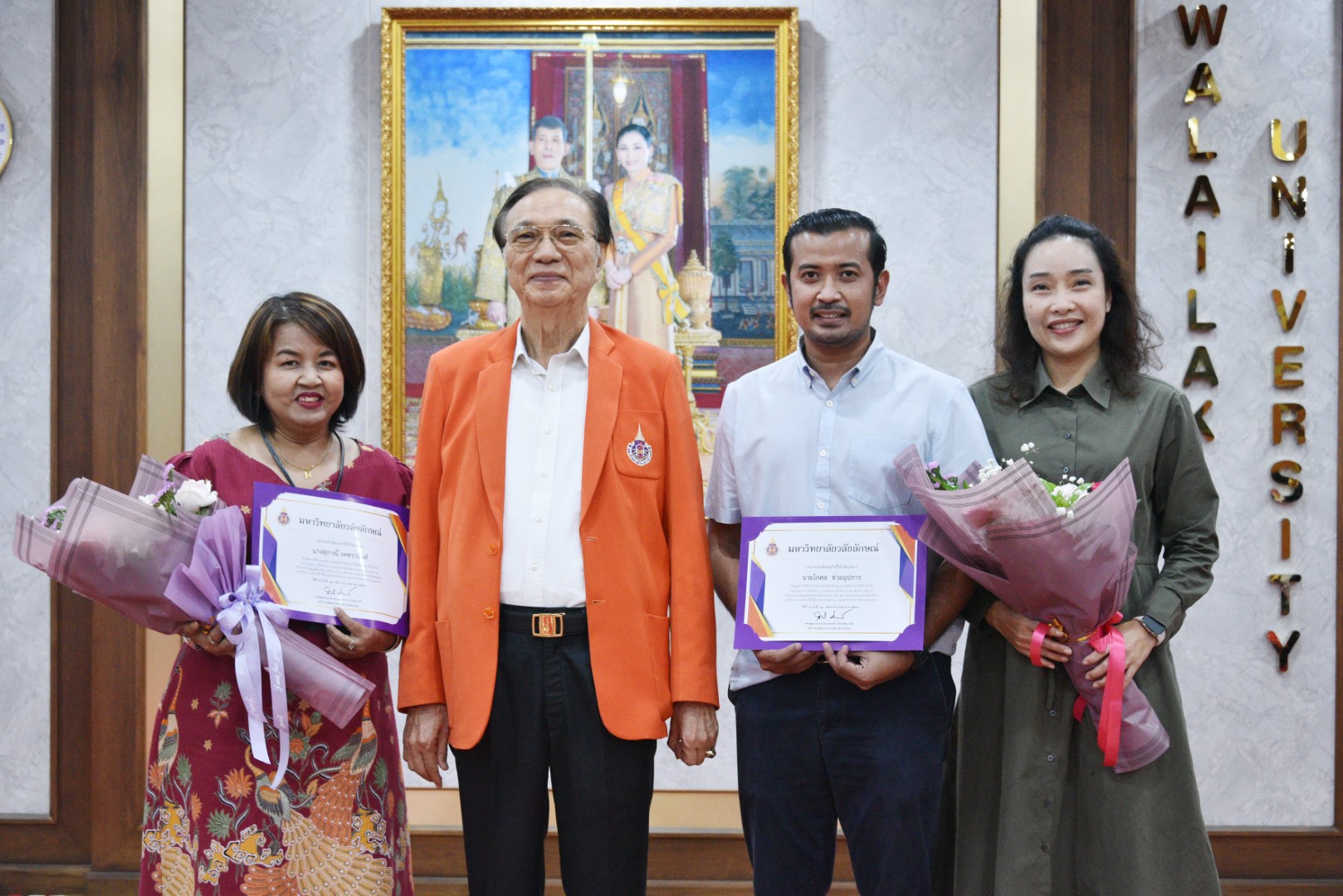 วันนี้ (13 ธันวาคม 2566) ศาสตราจารย์ ดร.สมบัติ ธำรงธัญวงศ์ อธิการบดีมหาวิทยาลัยวลัยลักษณ์ มอบเกียรติบัตรและช่อดอกไม้แสดงความยินดีแก่บุคลากรส่วนสื่อสารองค์กร ที่ได้รับการรับรองจากสมาคมประชาสัมพันธ์ไทย ดังนี้ 1) นางสุภาณี เพชรานันท์ หัวหน้างานต้อนรับและสื่อสารภาพลักษณ์ ส่วนสื่อสารองค์กร ในโอกาสได้ผ่านการประเมินสาขา นักสื่อสารองค์กรสัมพันธ์ ระดับ 5 และ2) นายโกศล ช่วยอุปการ เจ้าหน้าที่บริหารงานทั่วไป ส่วนสื่อสารองค์กร ได้ผ่านการประเมินสาขา นักสร้างสื่อประชาสัมพันธ์ ระดับ 5 จากสถาบันคุณวุฒิวิชาชีพ (องค์การมหาชน) หรือ สคช. และสมาคมประชาสัมพันธ์ไทย โดยมีผู้ช่วยศาสตราจารย์ ดร.ฟารีดา เจะเอาะ ผู้ช่วยอธิการบดีและบุคลากรส่วนสื่อสารองค์กร ร่วมแสดงความยินดี