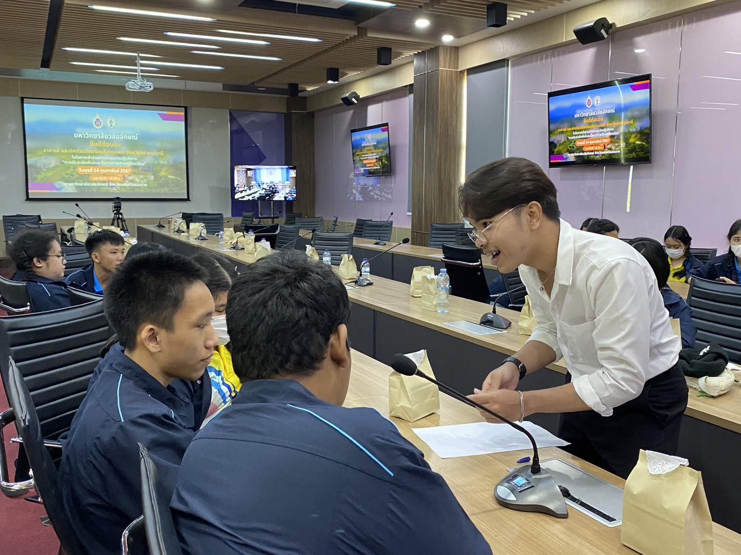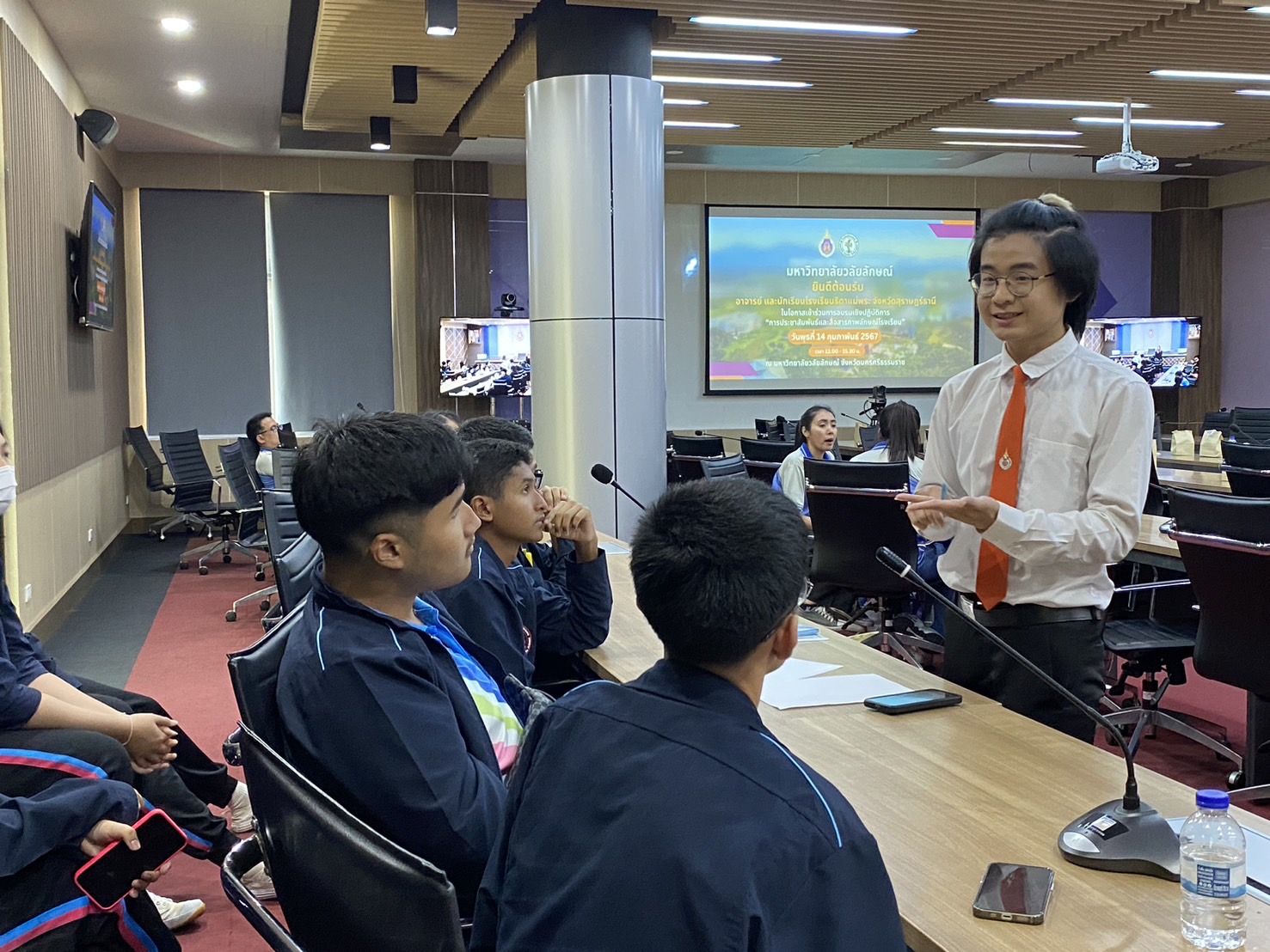 วันนี้ (14 กุมภาพันธ์ 2567) ผู้ช่วยศาสตราจารย์ ดร.ฟารีดา เจะเอาะ ผู้ช่วยอธิการบดีมหาวิทยาลัยวลัยลักษณ์ ให้การต้อนรับคณะครูและนักเรียนชั้นมัธยมศึกษาปีที่ 3 โรงเรียนธิดาแม่พระ จ.สุราษฎร์ธานี จำนวน 77 คน ในโอกาสเข้าร่วมการอบรมเพื่อการสื่อสารภาพลักษณ์โรงเรียน จัดโดยส่วนสื่อสารองค์กร มหาวิทยาลัยวลัยลักษณ์