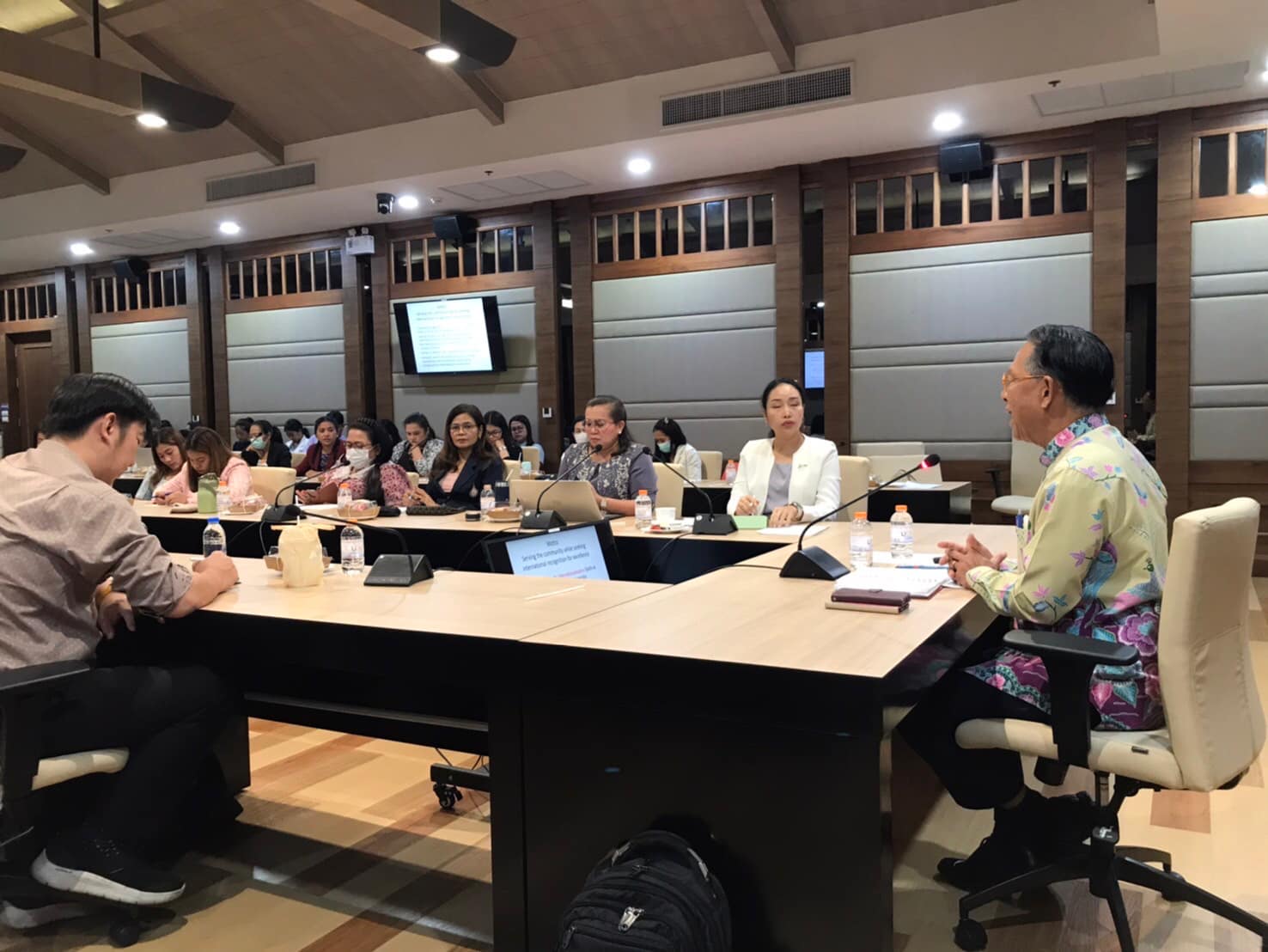 จากนั้นเชิญผู้บริหารระดับสูงร่วมให้การต้อนรับซึ่งเป็นการให้เกียรติคณะที่มาเยือน นอกจากนั้นมีการชมสื่อวีดิทัศน์แนะนำมหาวิทยาลัย เพื่อให้คณะได้รู้จักมหาวิทยาลัยมากยิ่งขึ้น และที่สำคัญมีการจัดนำสถานที่ต่างๆในมหาวิทยาลัยเพื่อให้คณะได้สัมผัสถึงความสวยงามในแง่มุมต่างๆ และบันทึกภาพเพื่อสร้างการจดจำที่ดีในการมาเยือนมหาวิทยาลัยระดับโลก