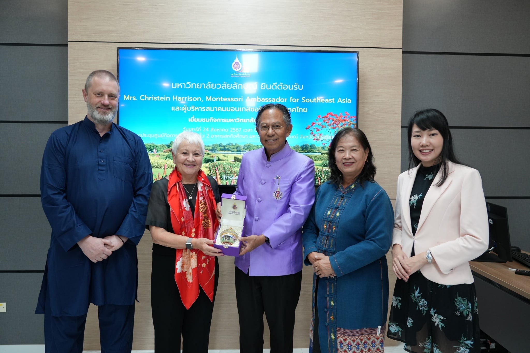 เมื่อวันที่ 24 สิงหาคม 2567 ที่ผ่านมา รศ.ดร.สุรินทร์ ไหมศรีกรด รองอธิการบดีมหาวิทยาลัยวลัยลักษณ์ ให้การต้อนรับคณะจาก สมาคมมอนเทสซอรี The Association Montessori Internationale. โดยมี Mrs. Christien Harrison หัวหน้าผู้แทนมอนเทสซอรีประจำภูมิภาคเอเชียตะวันออกเฉียงใต้ และดร.กรรณิการ์ บัต นายกสมาคมมอนเทสซอรีแห่งประเทศไทย พร้อมด้วย พระมหาพุทธศาสตร์พุทธาจาโร ประธานโครงการบัวพ้นน้ำ และคณะเข้าร่วมการพูดคุย ณ ห้องประชุมกิจการนานาชาติ