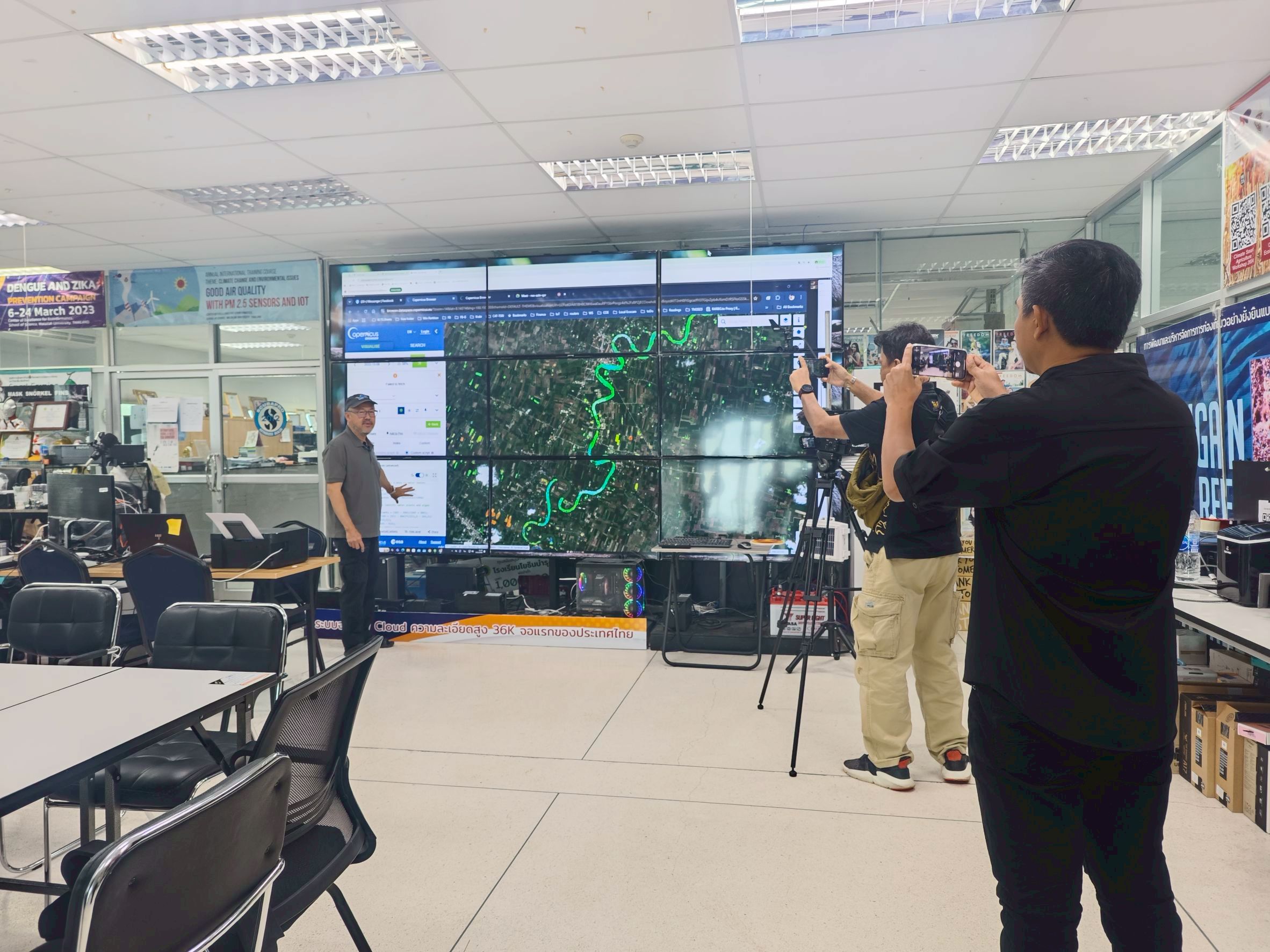 เมื่อวันที่ 5 พ.ย.’68 หัวหน้างานและบุคลากร งานข่าวฯ ส่วนสื่อสารองค์กร ม.วลัยลักษณ์ ต้อนรับผู้สื่อข่าว Thaipbs ศูนย์ข่าวภาคใต้ จ.นครศรีธรรมราช เข้าสัมภาษณ์ รศ.ดร.กฤษณะเดช เจริญสุธาสินี ผู้อำนวยการศูนย์ความเป็นเลิศนิเวศวิทยาพยากรและการจัดการ ในการเปิดข้อมูลสำรวจลุ่มน้ำปากพนัง จังหวัดนครศรีธรรมราช ณ ศูนย์ความเป็นเลิศนิเวศวิทยาพยากรและการจัดการ อาคารอุทยานวิทยาศาสตร์และเทคโนโลยี มหาวิทยาลัยวลัยลักษณ์